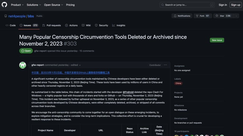 As of Thursday, November 2nd, a large number of open source firewalls with Chinese developers have either had their code removed from GitHub, or their GitHub accounts have been removed altogether.
