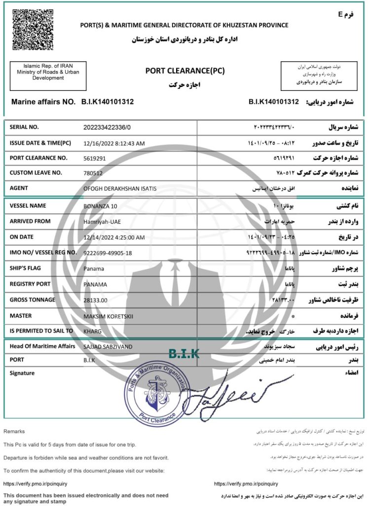 The Emerald ship owned by the terrorist Ali Shamkhani was on the US sanctions list in 2021.