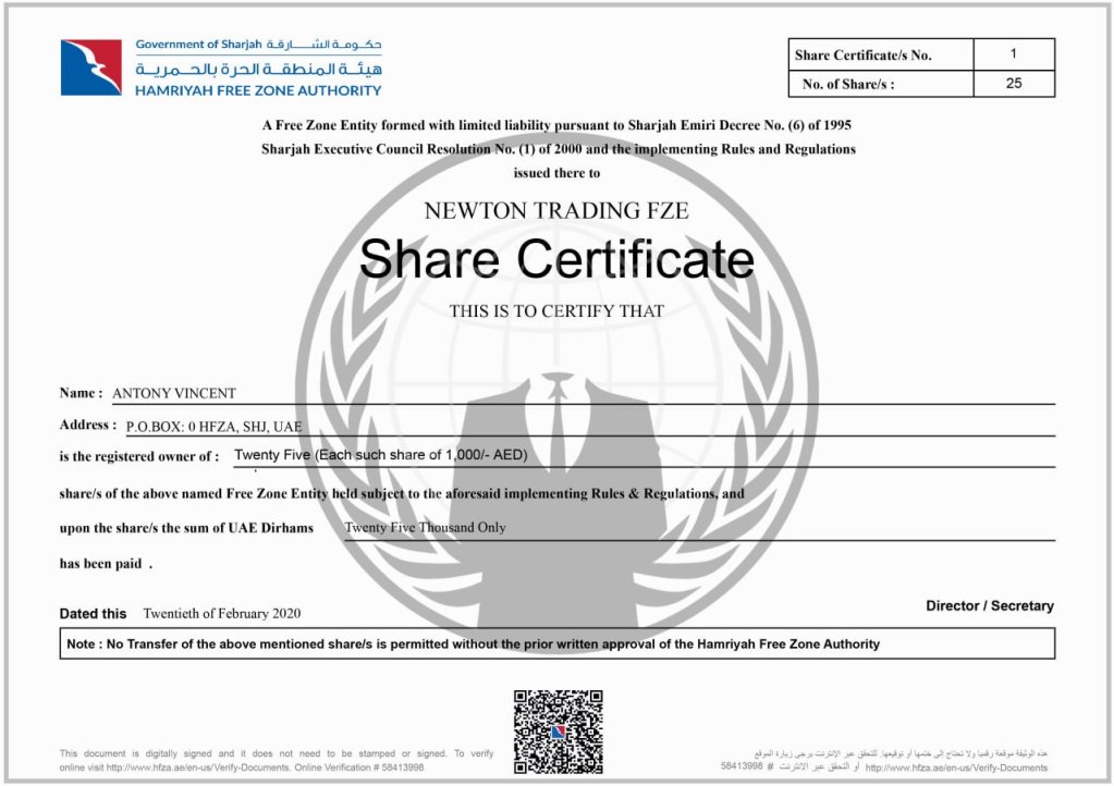 Share Certificate/s No.
