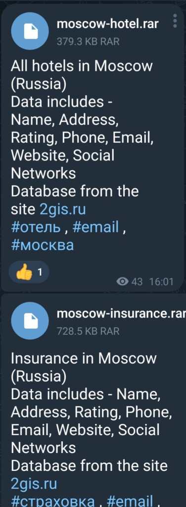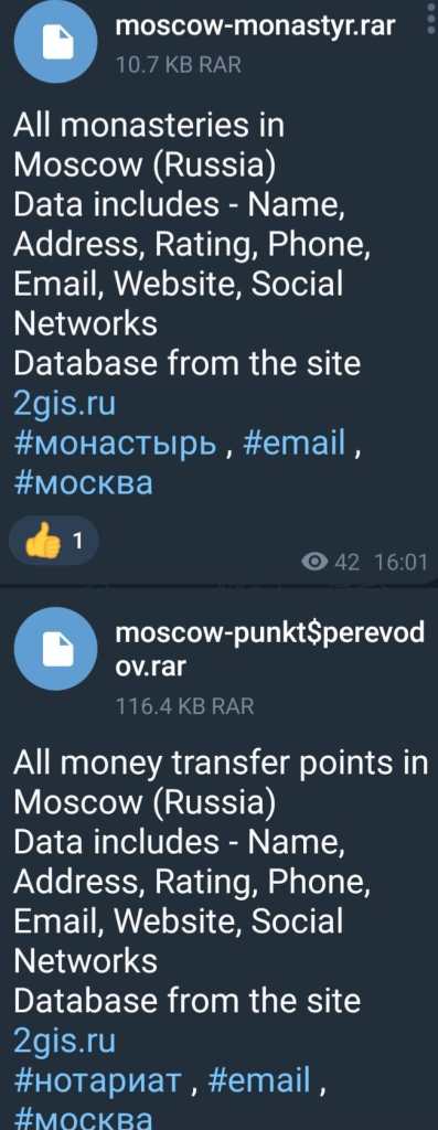 Database from the site 2gis.ru