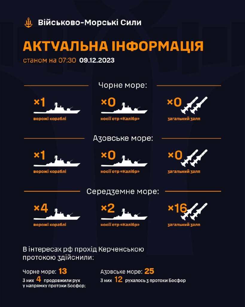 in the Mediterranean Sea, 4 enemy ships, including 2 carriers of “Caliber” cruise missiles, a total salvo of up to 16 missiles;