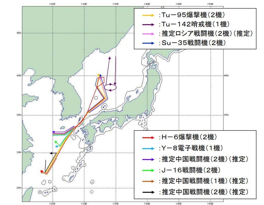 Flight routes and composition of participants within the framework of joint air patrols of the Russian Aerospace Forces and the PLA Air Force