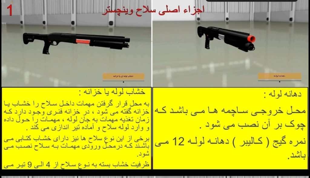 Training book on maintenance and use of shotguns manufactured by Shahid Kaveh Khorasan and Shahid Hamdani industries in different models such as Maher and Sayad