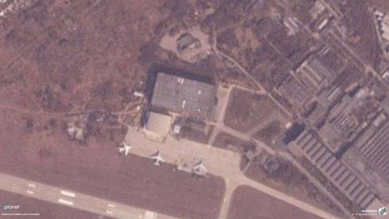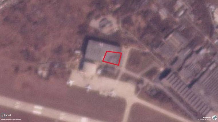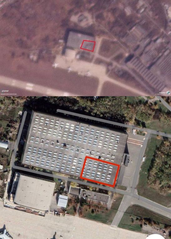 The photo shows satellite images showing traces of a kamikaze UAV strike on the TANTK aircraft factory named after Beriev in Taganrog.