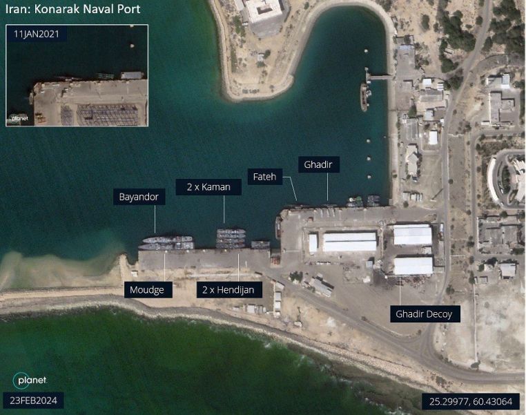 A satellite image of the third marine area of Nabbut and the naval base of the army in Konark, where a number of surface and subsurface fleets can be seen.