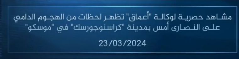 On tonight, March 23, 2024 AD, the Islamic State terrorist organization, via its official Amaq News Agency (the main official media of Daesh) published a first PoV footage showing the terrorist attack against Crocus City Hall in Krasnogorsk, a Russian city on the western edge of Moscow