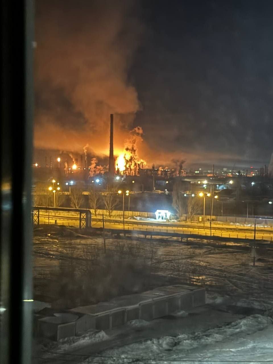 As a result of a drone attack on Saturday night, a fire started at the Kuibyshev oil refinery.