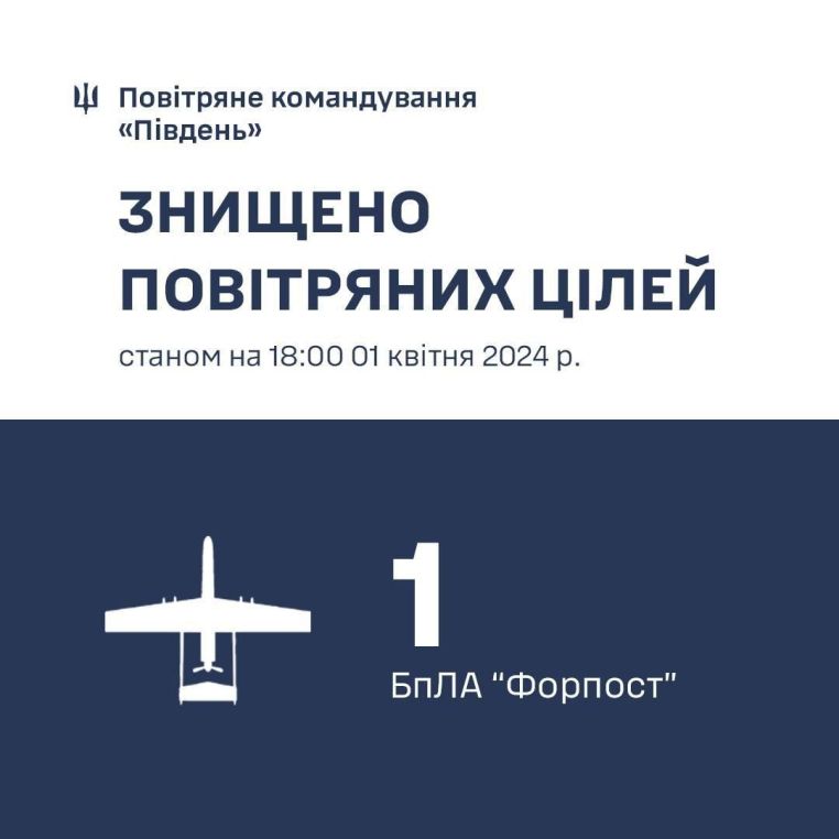 One of the most expensive Russian attack drones “Forpost” was shot down by the Ukrainian troops over the waters of the Black Sea – the “Southern” air command