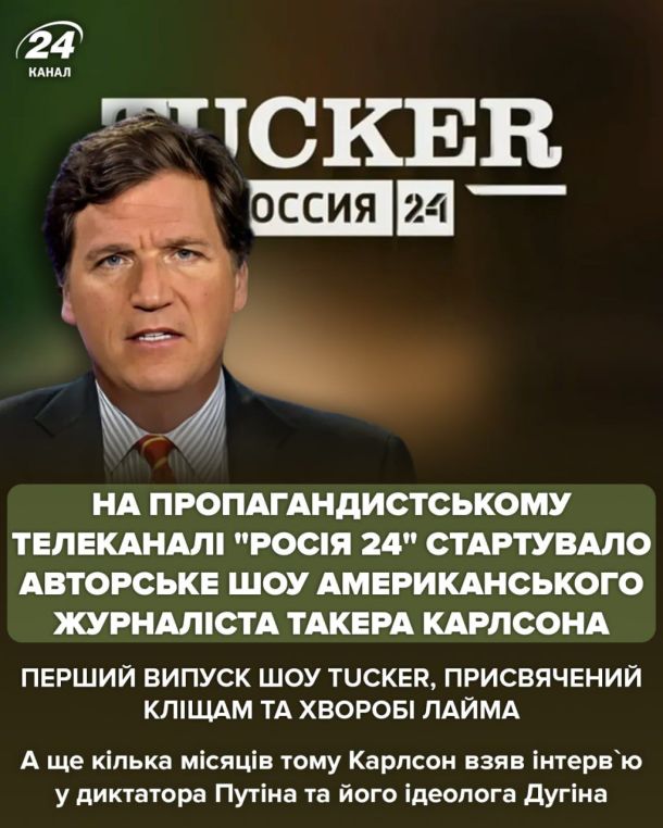 Carlson and Russian propaganda began to actively cooperate in February 2024, when he published an interview with Putin, and later with the dictator’s ideologue Dugin.