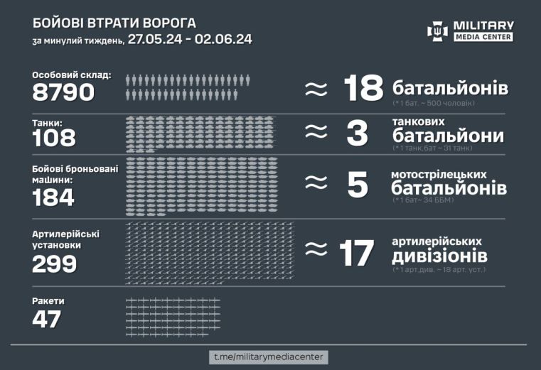 The Defense Forces of Ukraine during the past week from May 27 to June 2 destroyed: