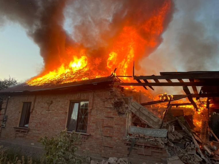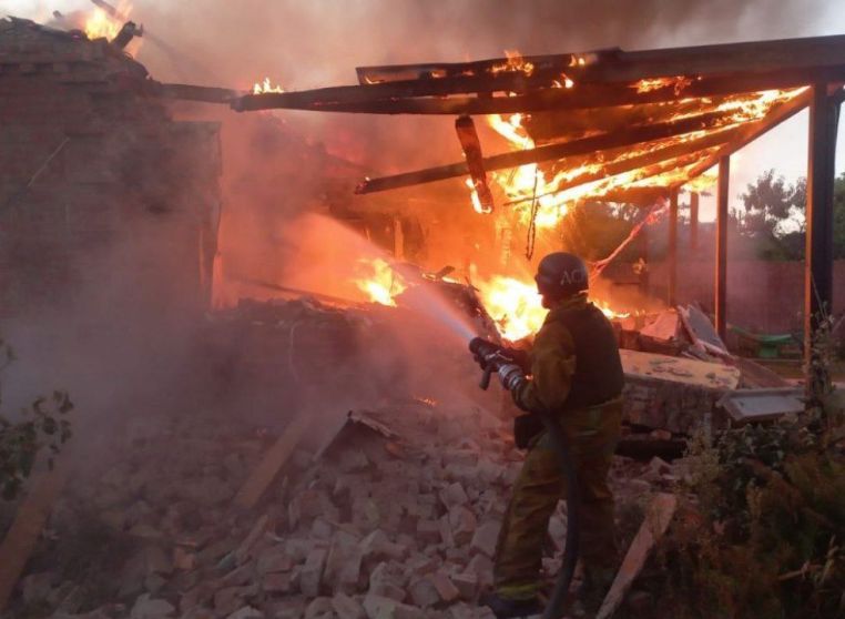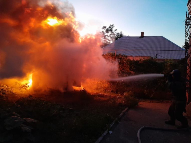 Apartment buildings and private houses were damaged in the city. A fire broke out in one of the yards.