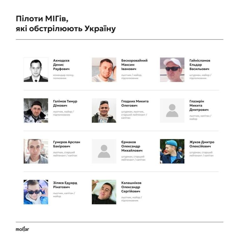 Data, photos, contacts of 95 Russian pilots, commanders, engineers and their families who give orders and launch missiles at hospitals, residential buildings and children.