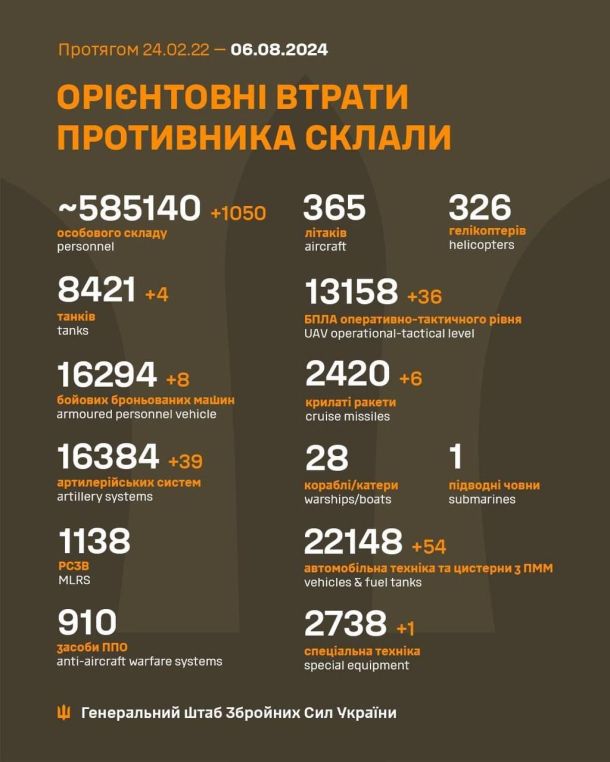 Operational information as of 08:00 08/06/2024 regarding the Russian invasion