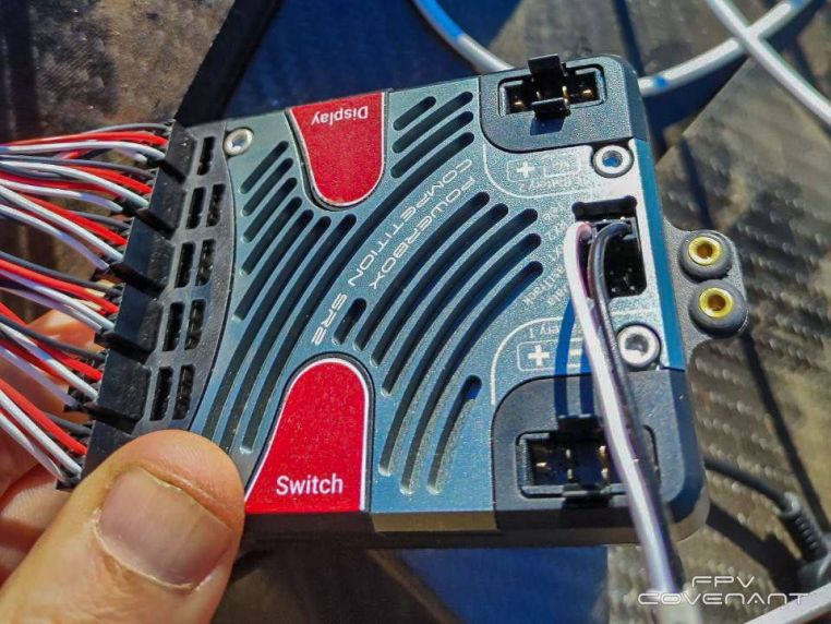 The radio link module for the remote control is marked in green with a bird.