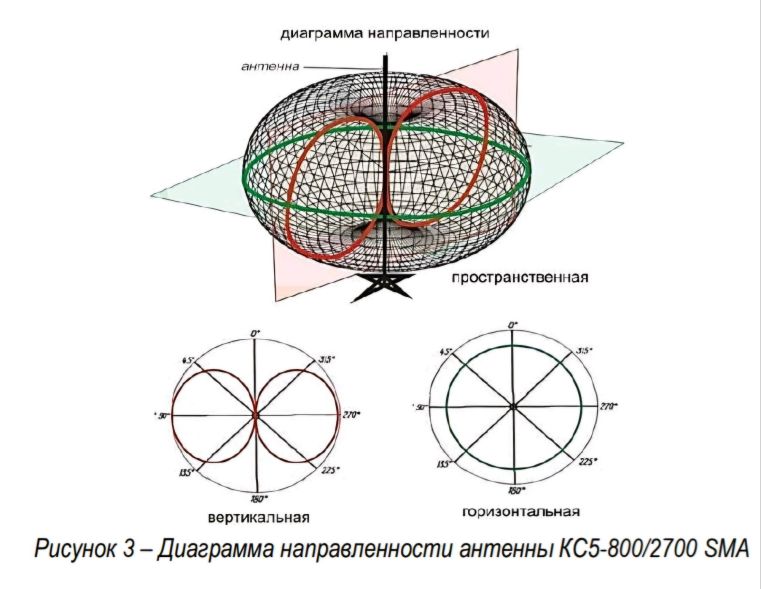Figure 3 – Directional diagram of the KS5-800/2700 SMA antenna