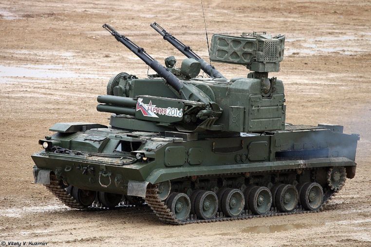Video recording of the VVSU 2S6 Tunguska air defense missile and gun system in action.