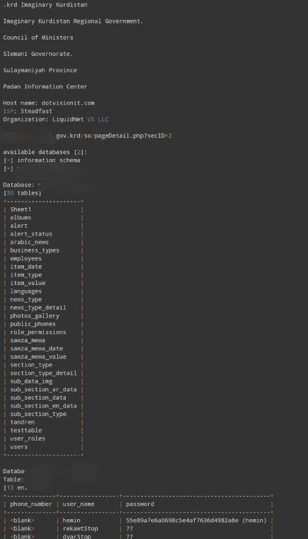 Dear Kurdistan, it is shameful that I find SQL on a government website