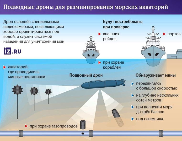 The infographic from IZ.RU is an overview of a Russian underwater drone designed for mine clearance in maritime environments. The system enhances naval security by detecting and neutralizing underwater mines, ensuring safe navigation for military and civilian vessels. Russian defense contractors, including Roselectronics and Tactical Missile Weapons Corporation (KTRV), developed this system. Rostec’s involvement indicates that this technology integrates into broader military modernization programs, integrating with Russia’s strategic maritime defense objectives.