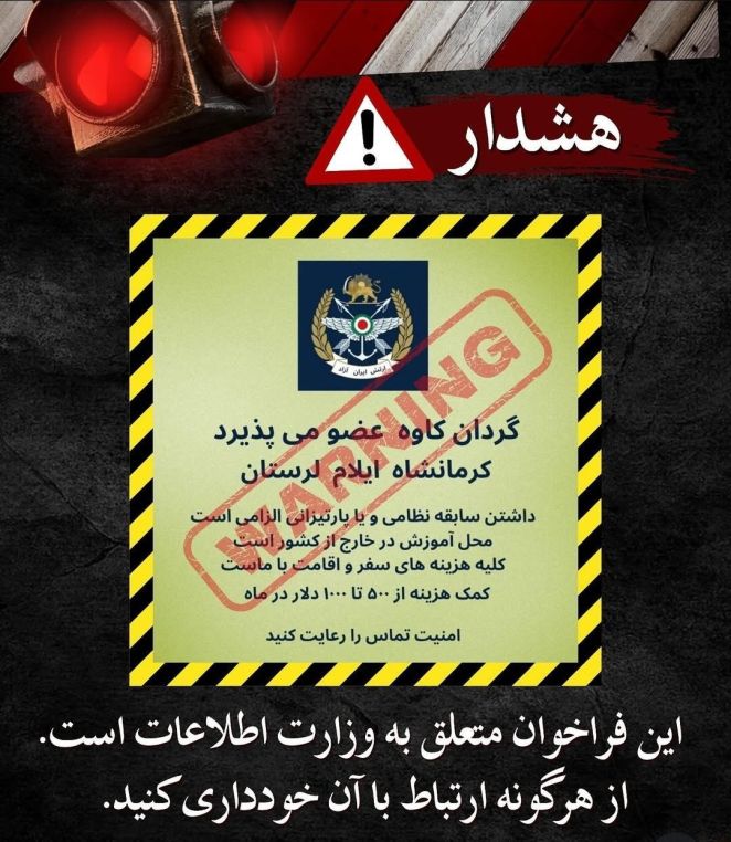 The so-called recruitment call for the “Free Iran Army” is nothing more than a sinister ploy orchestrated by the Ministry of Intelligence of the Islamic Republic. The clerical regime, desperate to maintain its weakening grip on power, has devised yet another deceptive trap targeting the brave and freedom-loving youth of Kermanshah, Ilam, and Lorestan. By luring individuals with promises of military training, financial incentives, and safe passage abroad, the regime seeks to identify, suppress, and ultimately eliminate those who stand against its tyranny.