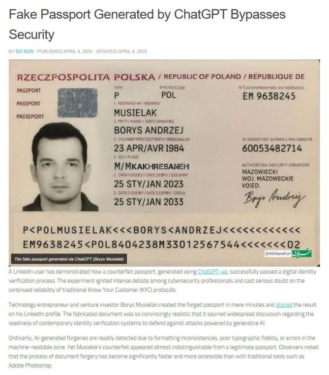 Security Shock: Fake Passport Made with 04 ChatGPT Passes JFK Airport Digital Identity Check!