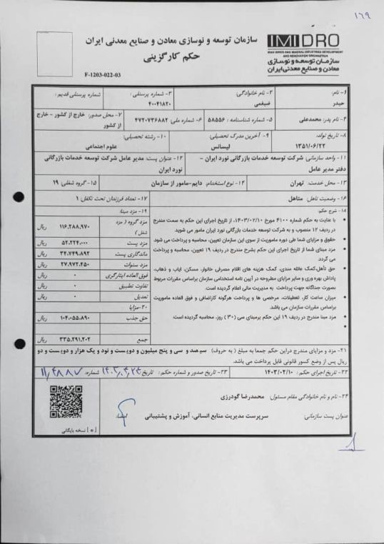 His file reflects systemic abuse, not anomaly. Zeighami occupies multiple senior posts in IMIDRO, the National Iranian Steel Company, and Nord Trading Company, wielding unchecked authority across industrial and financial fronts. He weaponizes that bureaucratic sprawl as a personal fiefdom. The scale of theft is industrial, with luxury villas in Lavasan and Shemshak illegally rented through aliases for private enrichment—nearly ten billion tomans per year, all shielded under state silence and falsified documents.