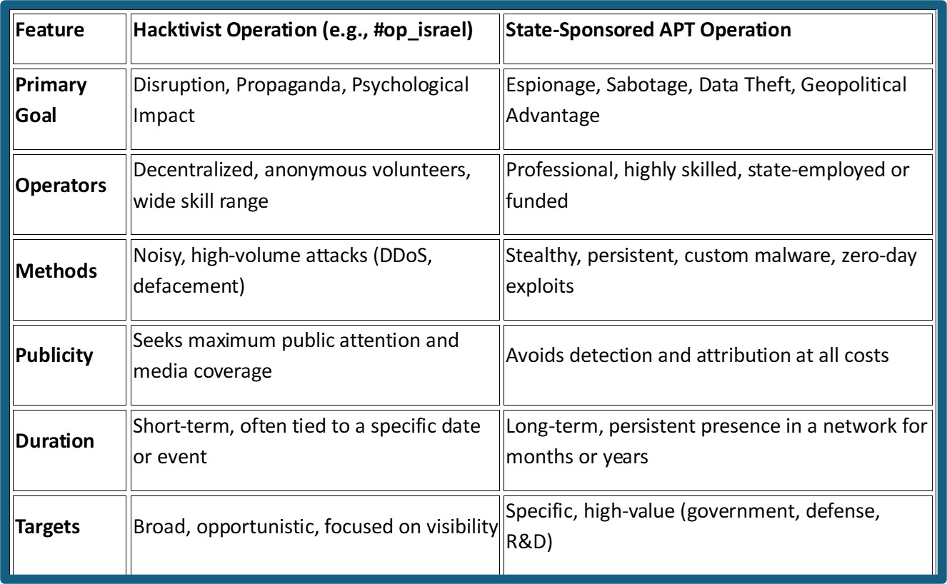 Comparative Analysis- Hacktivism vs. State-Sponsored Operations