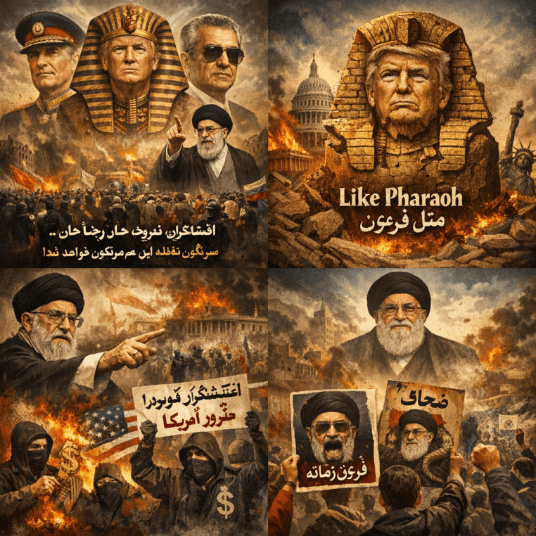 The Islamic Republic’s “Like Pharaoh” propaganda campaign represents a failed cognitive defensive posture that attempts to mask the January 2026 uprising and economic collapse with archaic theological metaphors—ultimately revealing the regime’s ideological bankruptcy rather than its strength.