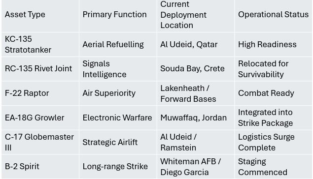 The relocation of the RC-135 Rivet Joint to Crete is particularly significant. This platform is slow and vulnerable to the advanced surface-to-air missiles that Iran possesses. Moving the aircraft to the Mediterranean preserves its ability to monitor Iranian communications while placing it outside the immediate reach of Iranian short-range ballistic missiles. Such a move is consistent with the “Red Line” doctrine—where high-value assets are protected before a known kinetic window begins. The arrival of EA-18G Growler aircraft in Jordan further confirms the preparation for a penetration mission into contested airspace. These planes specialise in jamming enemy radar and are essential for the first wave of any strike on hardened targets.