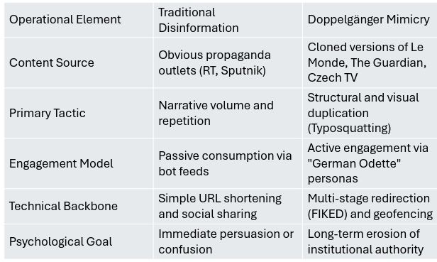 The historical context of Russian information operations reveals a trajectory from the “Firehose of Falsehood” model toward the current “Doppelgänger” model. In the early 2020s, the primary tactic was volume; by saturating the information space with conflicting narratives, actors could create a “truth decay” that paralyzed decision-making. However, as audiences became more attuned to low-quality disinformation, the adversary adapted. The 2025 Czech election served as a laboratory for this new doctrine, where the focus transitioned from content to context. Mimicry allows an operation to bypass the initial skepticism of the user by wrapping hostile narratives in the skin of reputable institutions.