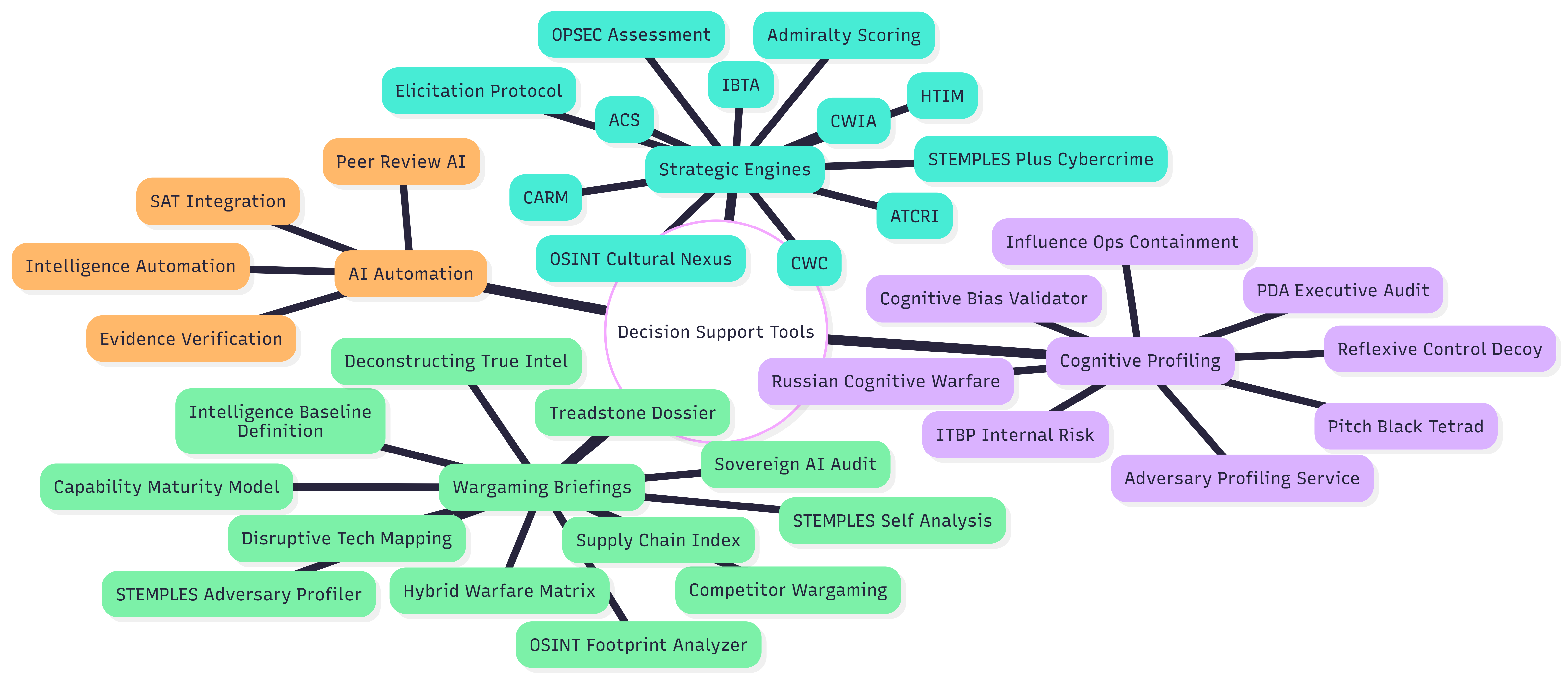 We provide decision support engines and structured analytic frameworks to outmaneuver opponents. Professionals fuse artificial intelligence with the cultural nexus framework to build a preemptive cognitive army. Analysts detect, analyze, expose, counter, and contain threats before physical breaches happen. Integrated behavioral threat analysis maps actor motivations with moderate to high probability. Cyber psychological operations influencing through strategy shape the future battlespace.