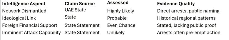 Authorities paraded 27 arrested men in a newly released public document. The official statement charges the group with planning attacks to destabilize the nation. Investigators directly link the accused to “Wilayat Al-Faqih,” the guiding ideology of the Iranian regime. We assess with high confidence that the UAE published the document to project strength and deter further underground organization.
