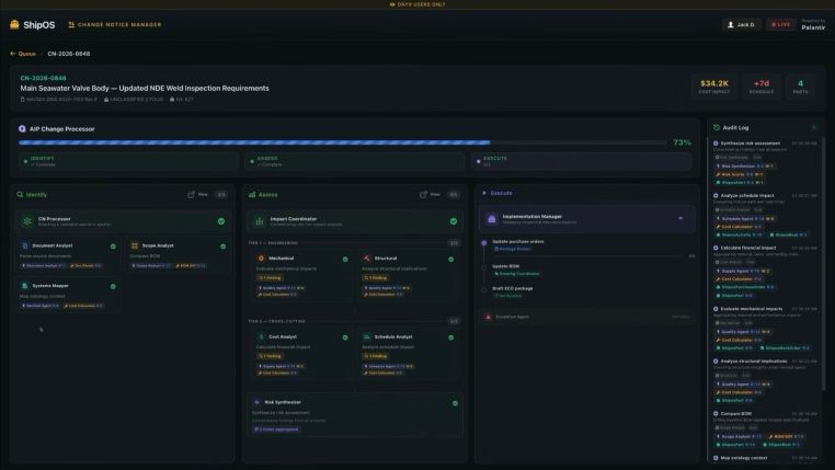 In fact, ShipOS transforms a fragmented industrial base into a single digital organism, where AI predicts material shortages and offers options for accelerating module assembly.