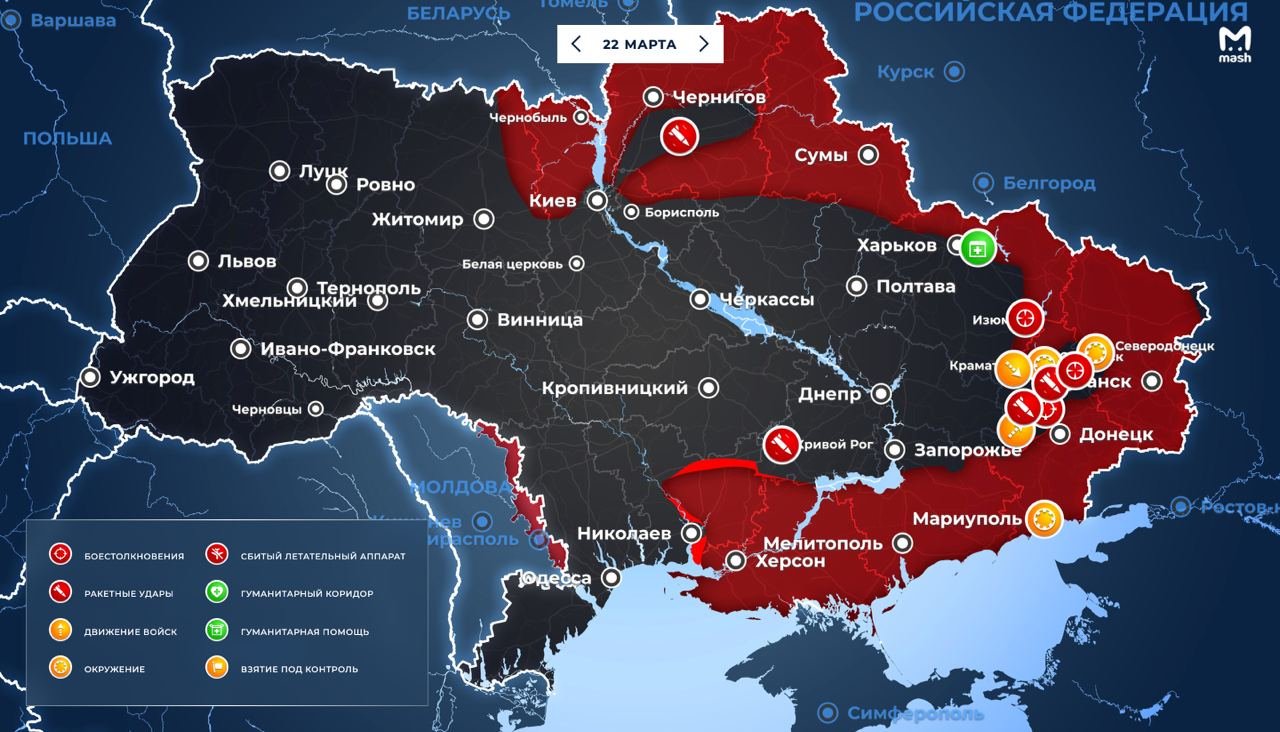 The international edition of the FAN has prepared a map of changes in the operational situation in Ukraine and Donbass for a month from the start of the special operation of the RF Armed Forces to March 26, 2022. #Ukraine | The latest update from the areas occupied by the invading #Russian army and the…