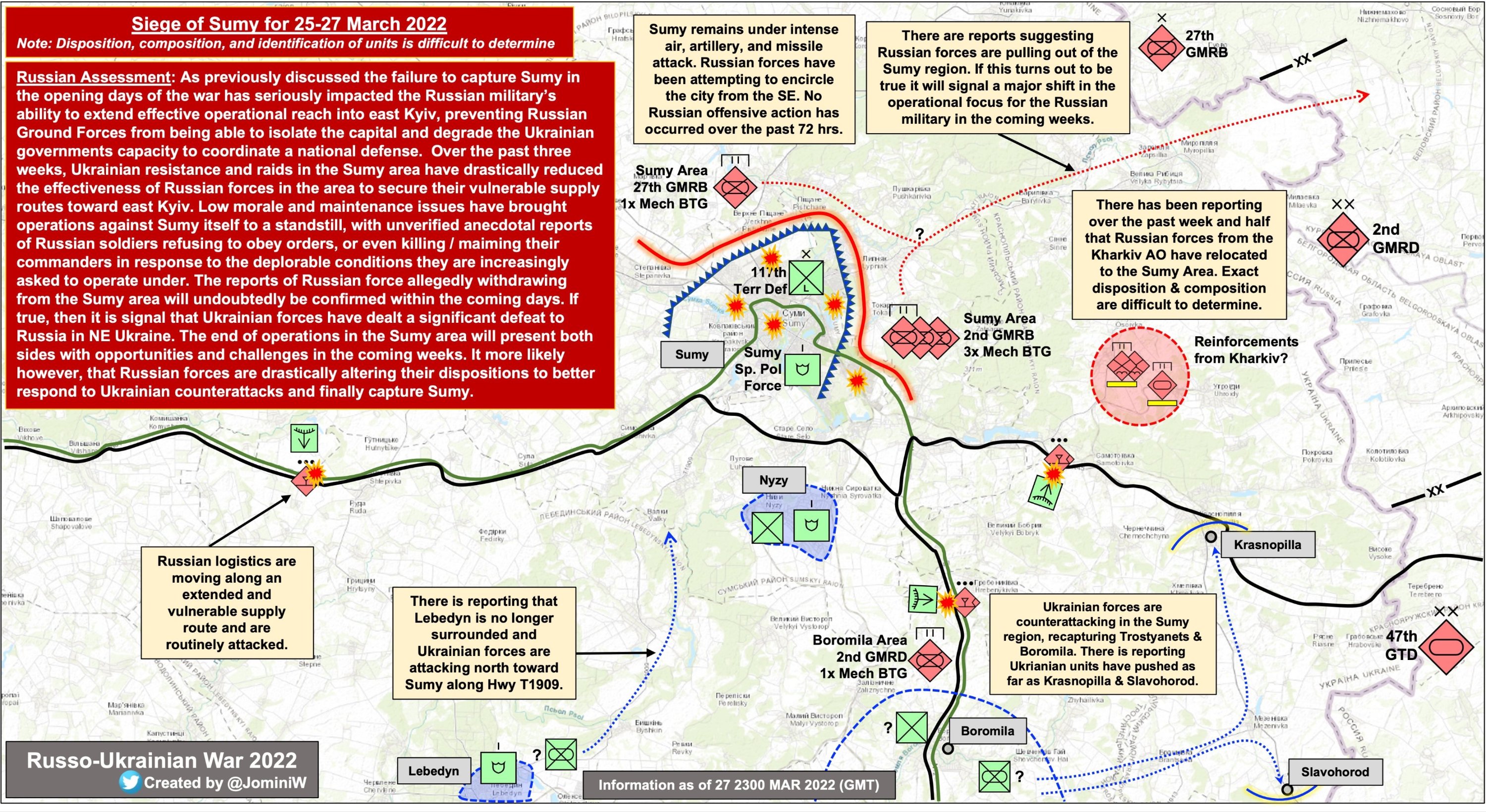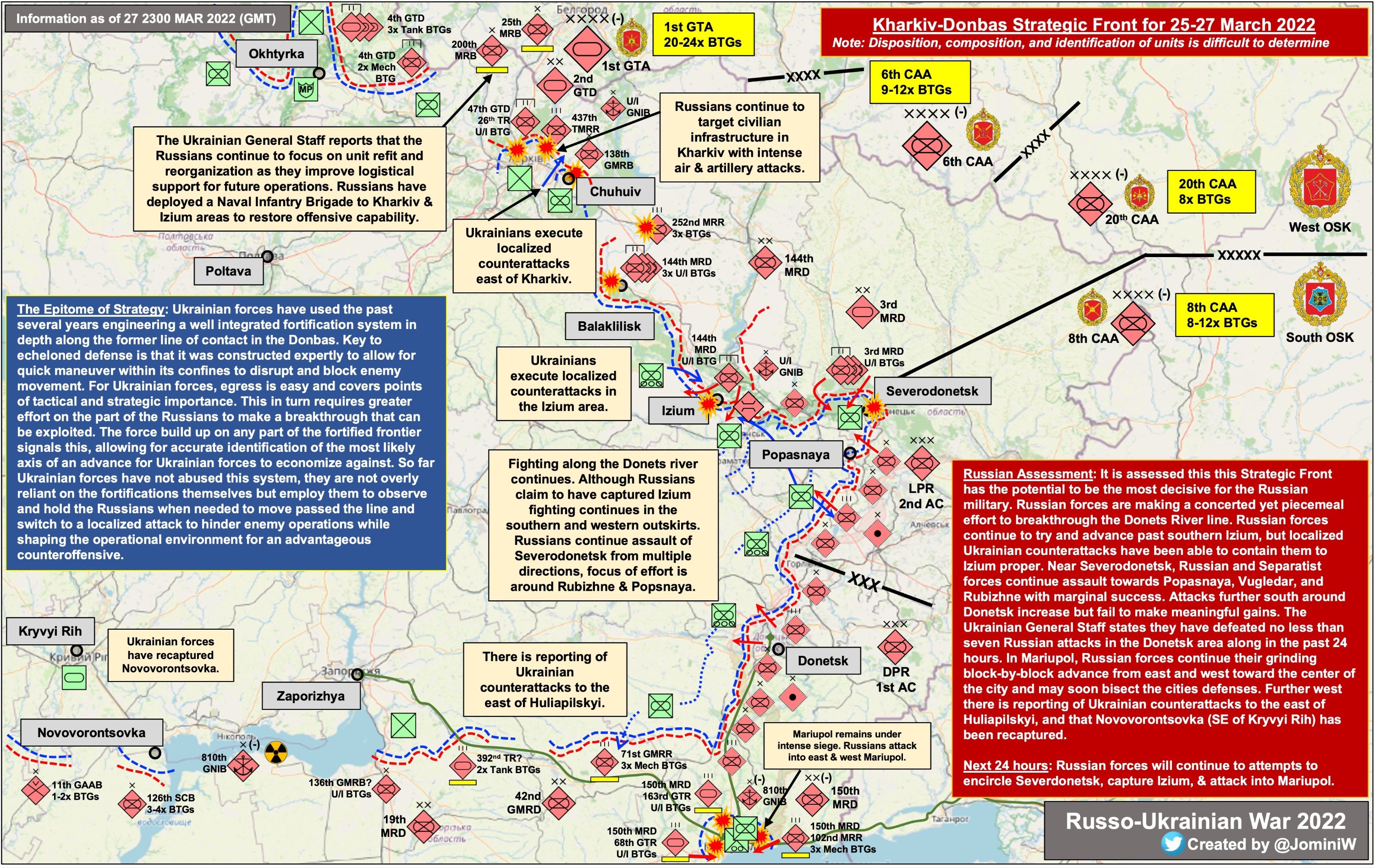 Operational information as of 18.00 on 22.03.2022 regarding the Russian invasion The twenty-seventh day of the heroic opposition of the Ukrainian people to the Russian military invasion continues.Unsuccessfully, the enemy continues to launch missile and bomb strikes using air strikes on military and civilian infrastructure in Zhytomyr, Kyiv, Chernihiv, Kharkiv and Donetsk oblasts. The enemy…