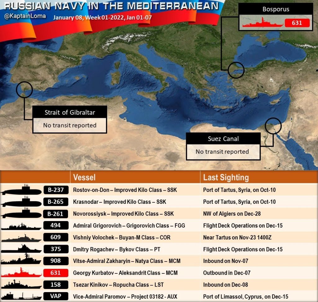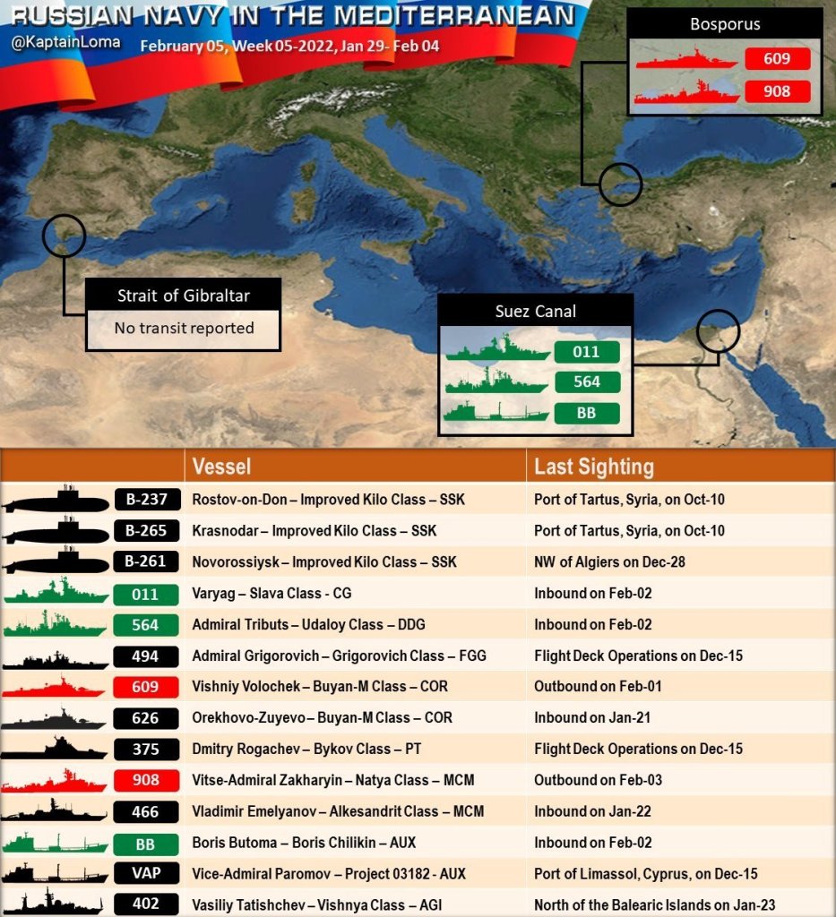 A regularly updated list of ships and submarines of the Russian Navy in the Mediterranean. January 29, 2022 Version