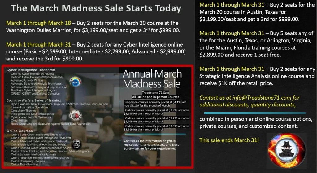 Online Courses (www.cyberinteltrainingcenter.com) https://treadstone71.com/index.php/issa-members-only-course-registration